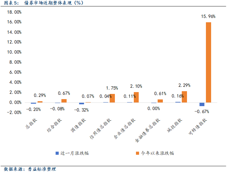 11月,尽管央行已恢复国债买卖,但是月初公布净买入量低于市场预期,同时公募销售新规仍悬而未决,且月末万科债券展期事件冲击,债市收益率全线.40%、1.62%、1.84%、2.18%,较上月末分别上行约1.9BP、5.1BP、4.9BP、4.8BP,其中短久期表现优于中长久期。目前债市整体交易情绪仍不足,负债端不稳定性不断上升。尽管基本面修复偏弱,但增量资金、年底机构配置行为暂未有积极进场信号,因此12月利率进一步大幅上行或下行的空间均相对有限,预计还将窄幅震荡运行,短久期票息策略仍是较优选择。政策端影响可重点关注12月政治局会议和中央经济工作会议。转债方面,先涨后降,月度收跌0.69%,表现优于沪深300(-2.46%)。板块上小盘表现偏弱,金融地产及周期等较为抗跌。转债高估值与择券空间有限,导致机构投资者持续缩量持有。建议关注平衡型转债投资以及收益增强部分为正股的中低波固收+产品,从而均衡固收类资产配置。